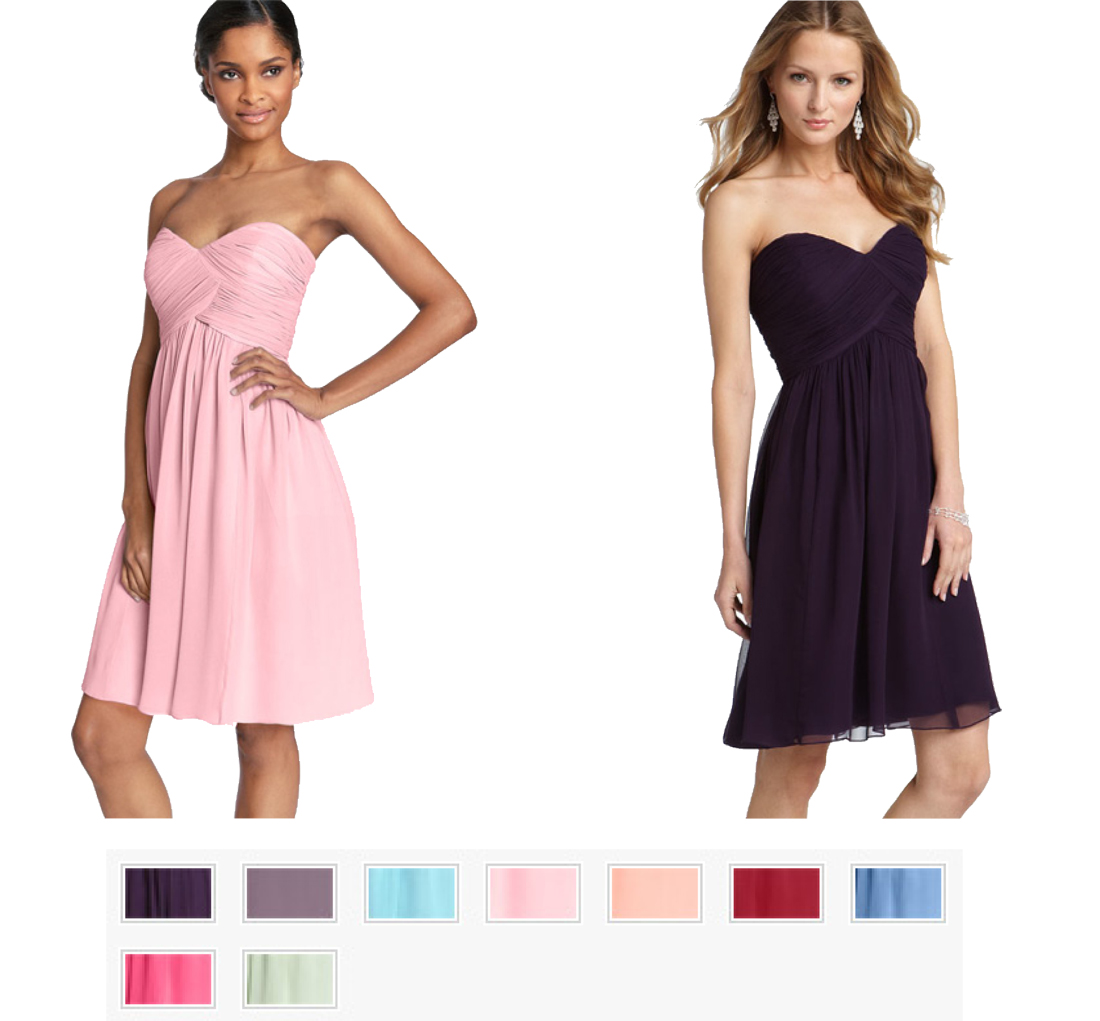 How cute are these Donna Morgan Strapless Silk Chiffon dresses? And with so many colors and a price point of $158, they are fabulous contenders in my book!
